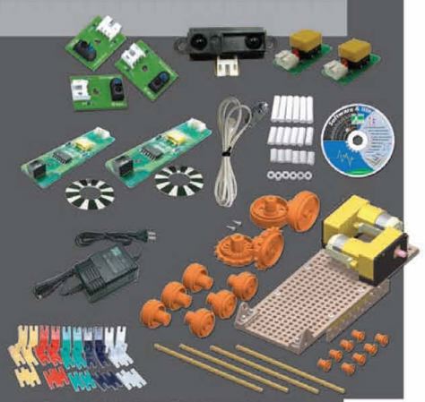 With this kit, you can build the mobile robot "Robo-11" and learn about control concept, sensor operation, programming skills, and more.