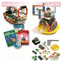 This is an amazing robot kit for everyone. You can build it and then control it by PBASIC programming. This kit includes the Stamp-BOX controller, DC gearbox, Switch, IR reflector for line detection and encoding, IR receiver module and remote control for communication and control and the GP2D120 module for object detection. There are enough mechanical parts to build two formats : iZEBOT and RoboTank. (One controller and controller carrier is provided in the kit)